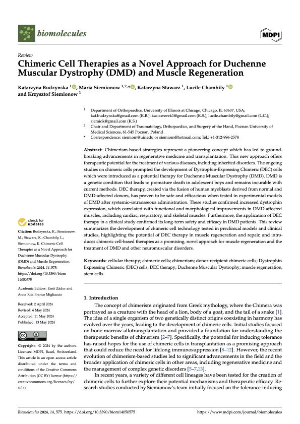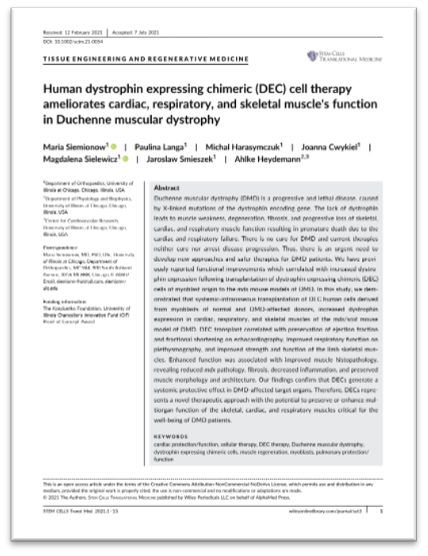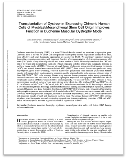 Transplantation of Dystrophin Expressing Chimeric (DEC) Human Cells of Myoblast/MSC Origin Improves Function in Duchenne Muscular Dystrophy Model