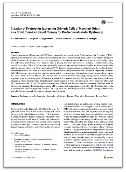 Creation of Dystrophin Expressing Chimeric Cells of Myoblast Origin as a Novel Stem Cell Based Therapy for Duchenne Muscular Dystrophy