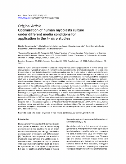 Optimization of human myoblasts culture under different media conditions for application in the in vitro studies