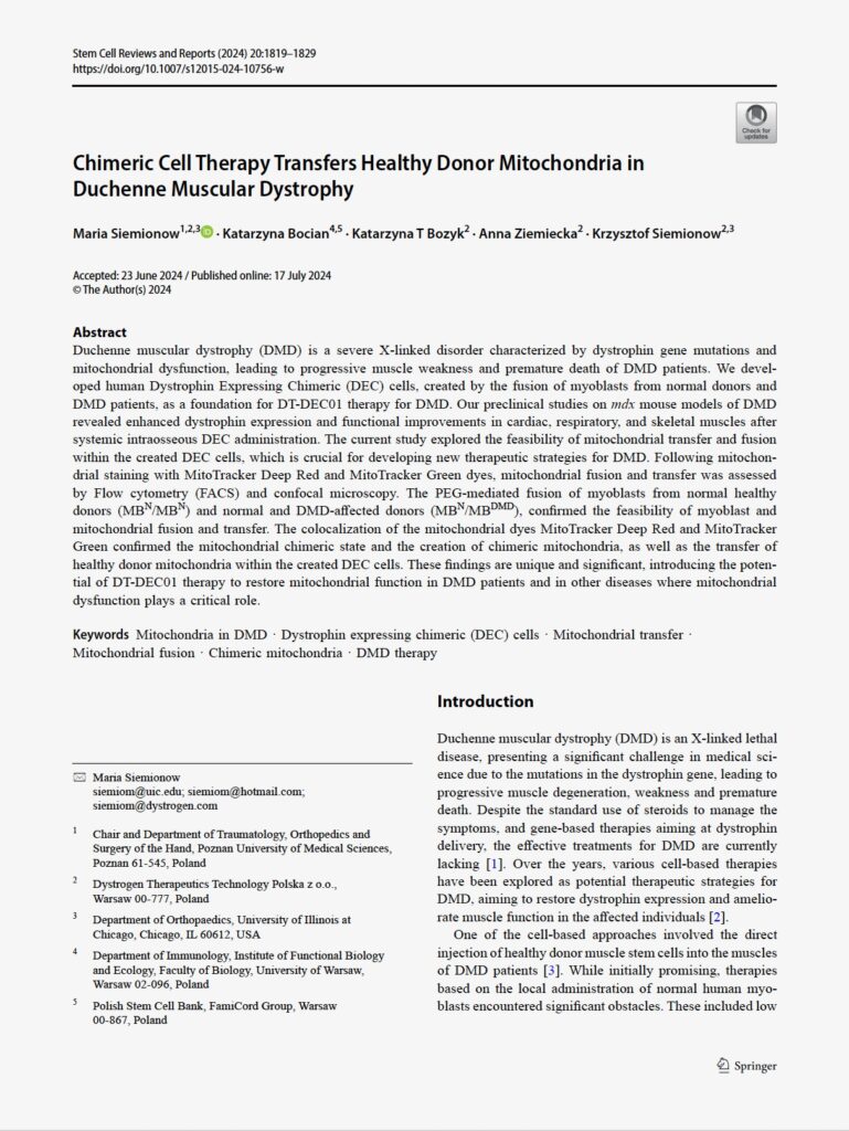 Safety and Efficacy of DT-DEC01 Therapy in Duchenne Muscular Dystrophy Patients: A 12 - Month Follow-Up Study After Systemic Intraosseous Administration